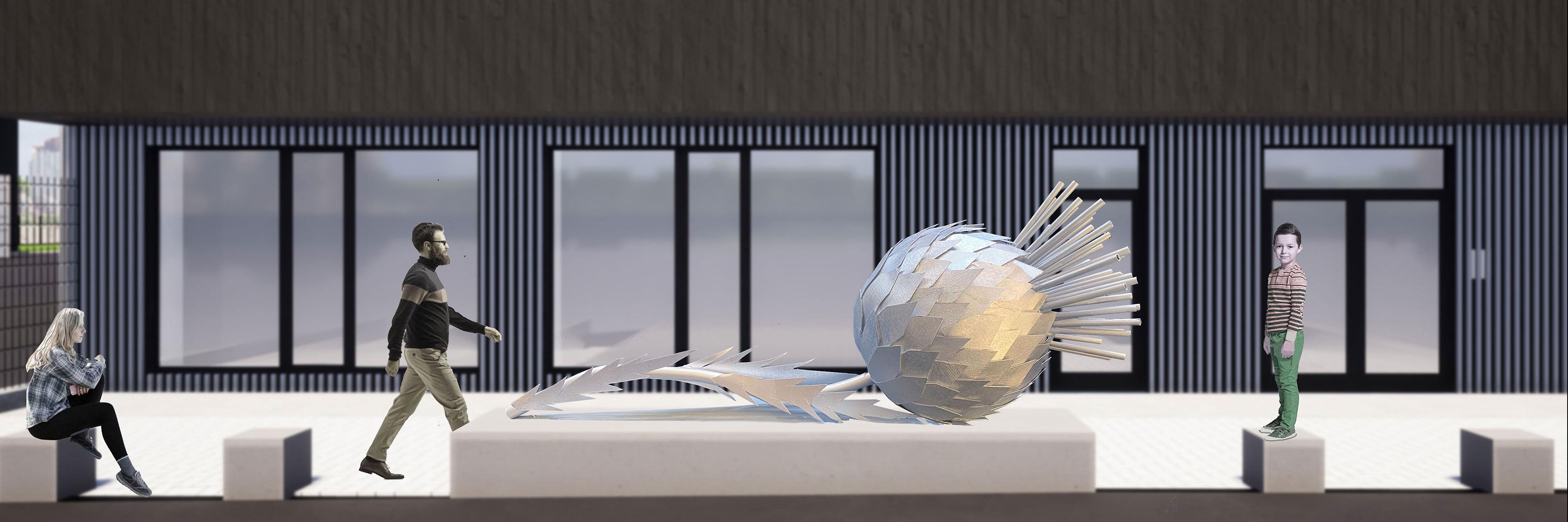 Kohtla-Järve ühishoone esist hakkab ilmestama Urmas Viigi skulptuur „Ohakas“