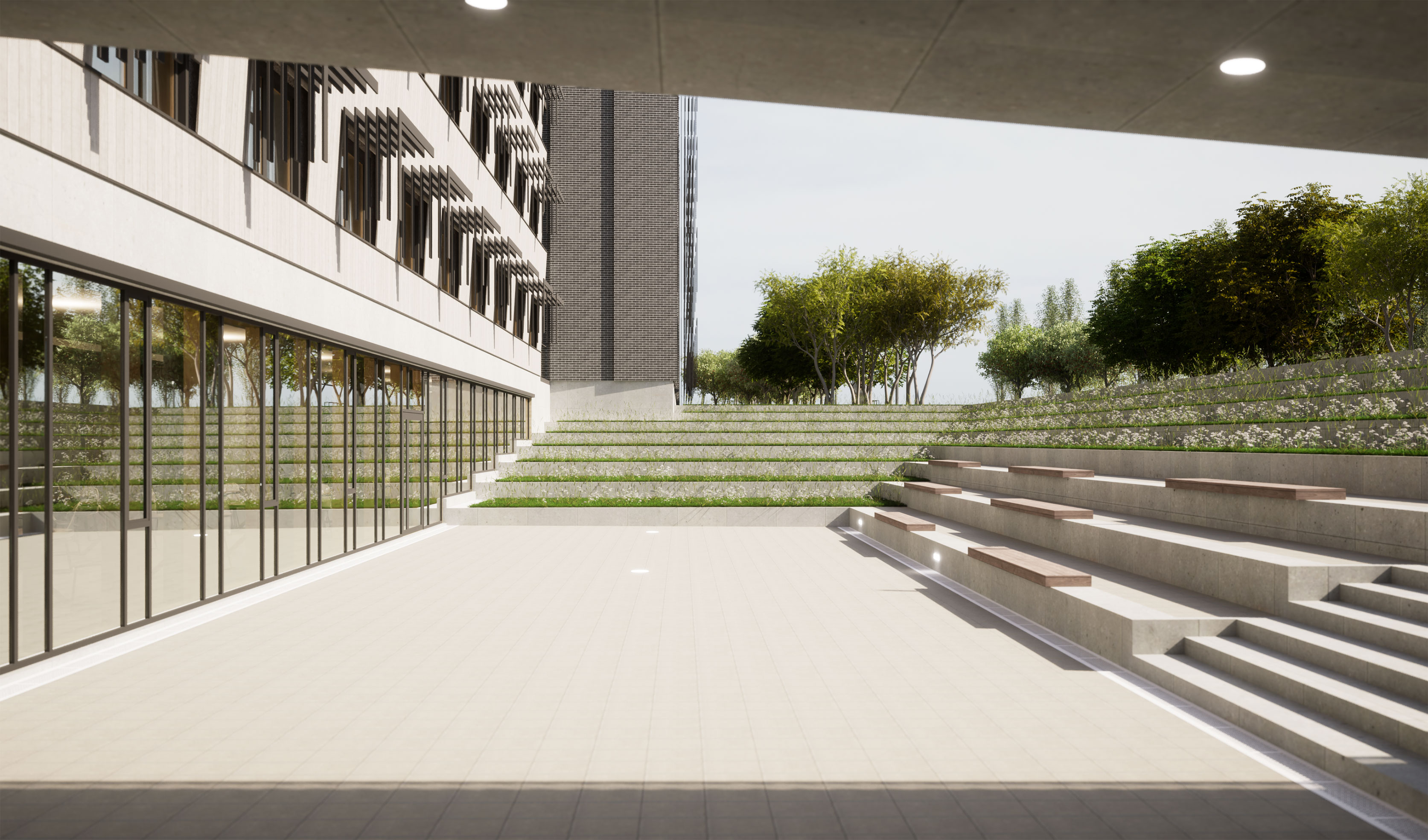 Teos hakkab asuma majutus- ja õppehoone lõunapoolse fassaadi ees, astmeliste terrassidega ühendatud välialal, mis on kavandatud puhkamiseks, õppimiseks ja välikohvikuna kasutamiseks. Kunstiteos võib paikneda nii süvendis asuval platsil kui ka astmelistel terrassidel. Kunstiteosele broneeritud ala mõõtmed on 13 × 39 meetrit.