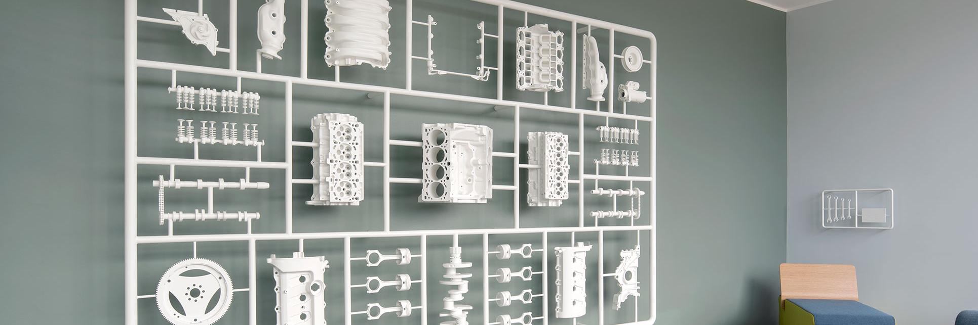 Tallinna Lasnamäe Mehaanikakooli õpilaskodu fuajees on valminud Karel Koplimetsa installatsioon „Mudelmootor"
