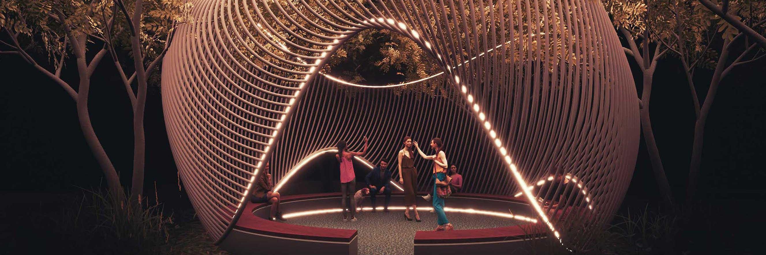 Kunstikonkursi žürii tegi valiku 28 töö hulgast, valides võitjaks muusika ja tantsu loovat liikumist sümboliseeriva kavandi „Helix“. Teose autoriteks on Liis Uustal, Egon Metusala, Mariliis Kundla, Mihkel Pajuste ja Mari Ronimois.