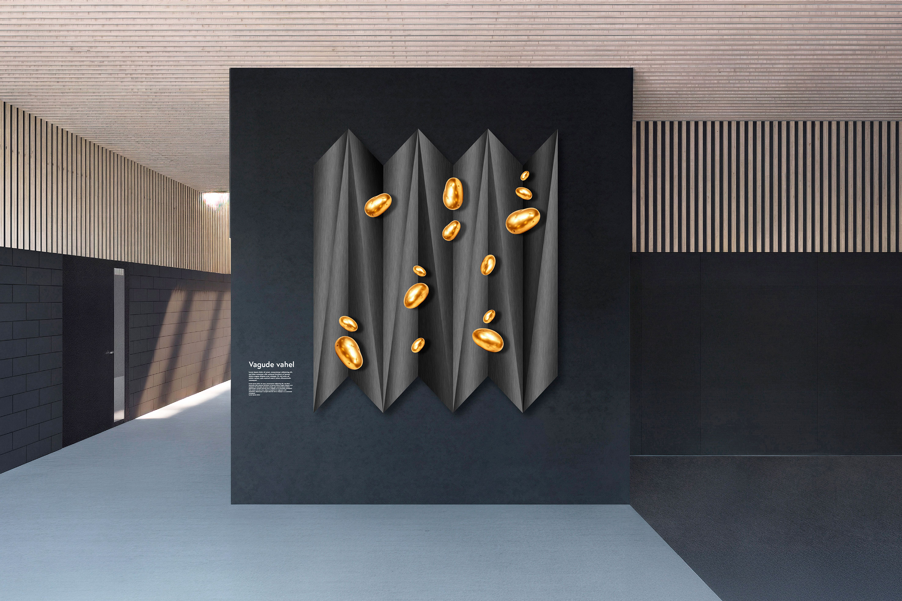 Kolmanda koha saavutas Fred Truusi metallikunstiteose kavand „Vagude vahel“. Teos viitab kartulivagudele kui rütmilistele süvenditele, milles paiknevad pronksist valatud kuldsed kartulid kui maa viljakuse ja kestvuse märgid. Reljeef rõhutab kordust ja ajalisust, käsitledes vagusid kui põlvkondade kaupa korduvat tööd maastikul. Žürii hinnangul loob kavandi selge kuid abstraheeritud kujundikeel ning tuntav materiaalsus veenva seose nii eesti ajaloolise kultuuri kui innovaatilise pilguga.