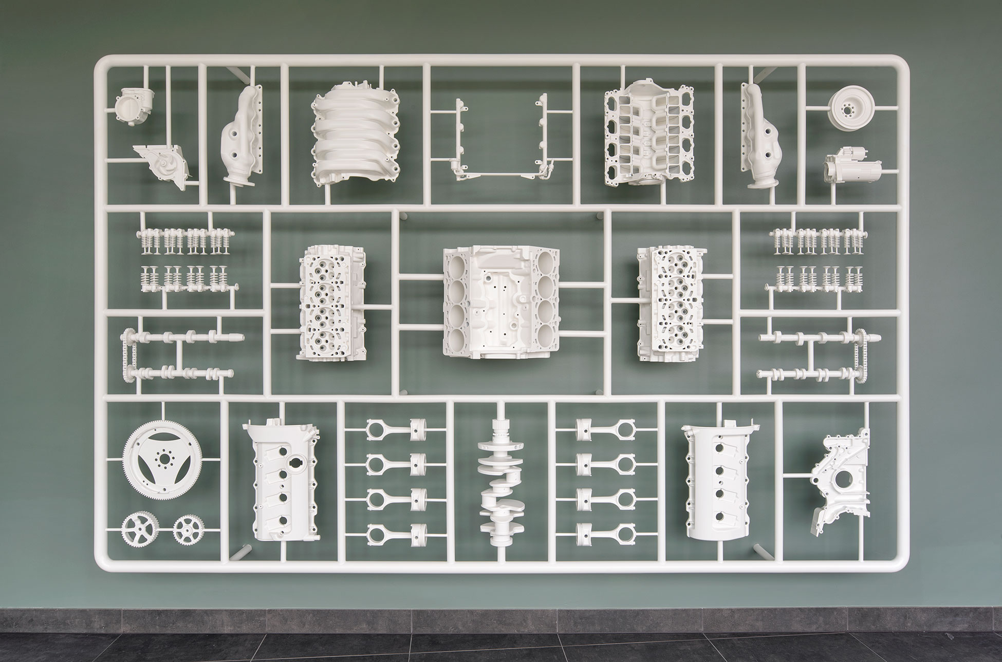 „Mudelmootor” on installatsioon, mis läheneb mänguliselt mehaanika teemale. Sarnaselt kokkupandavatele plastikust mängumudelitele võtab teos osadeks sisepõlemismootori. Teos on valmistatud terastorudest ja sõiduauto Audi A8 D3 V8 mootori detailidest.