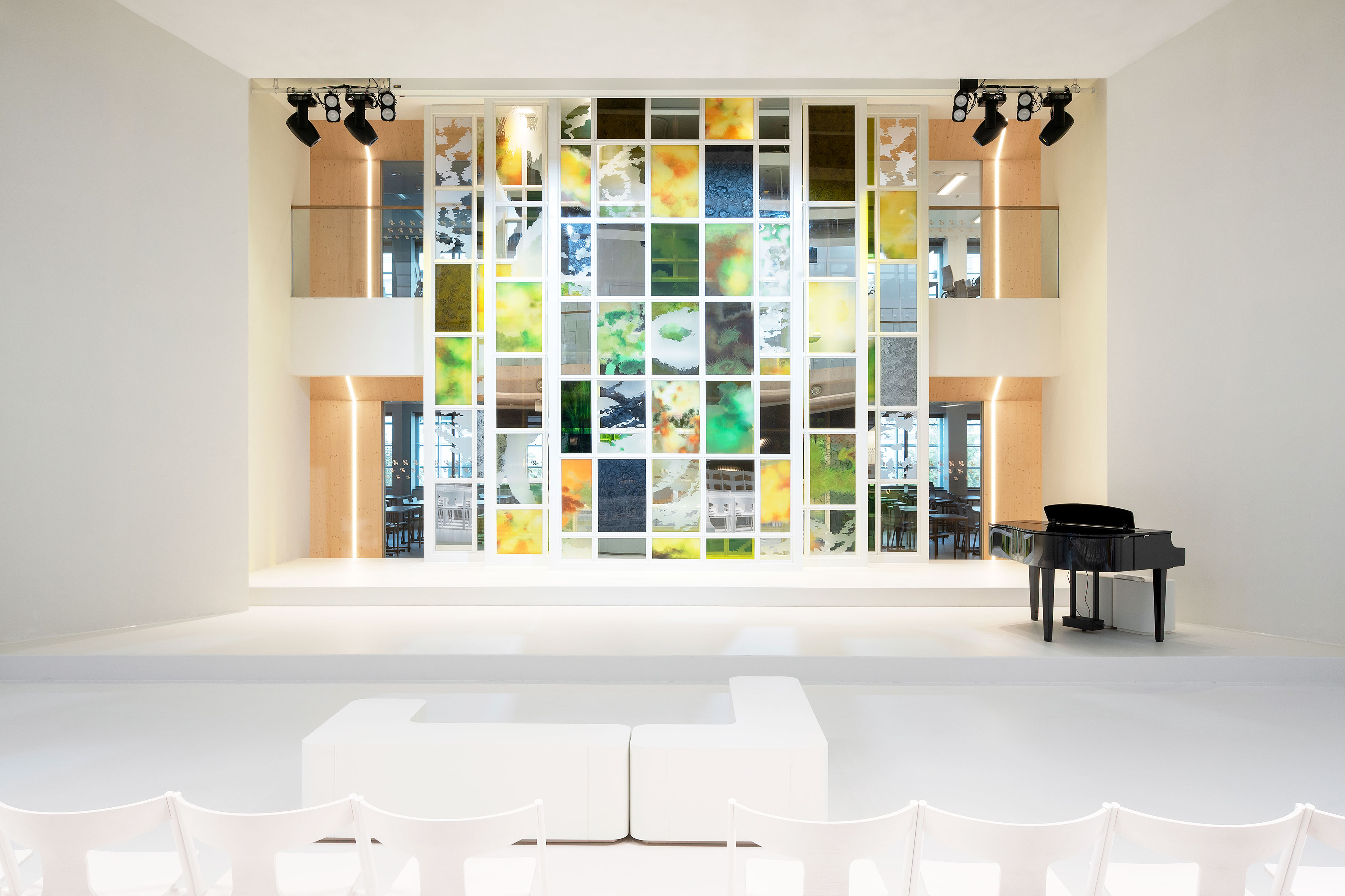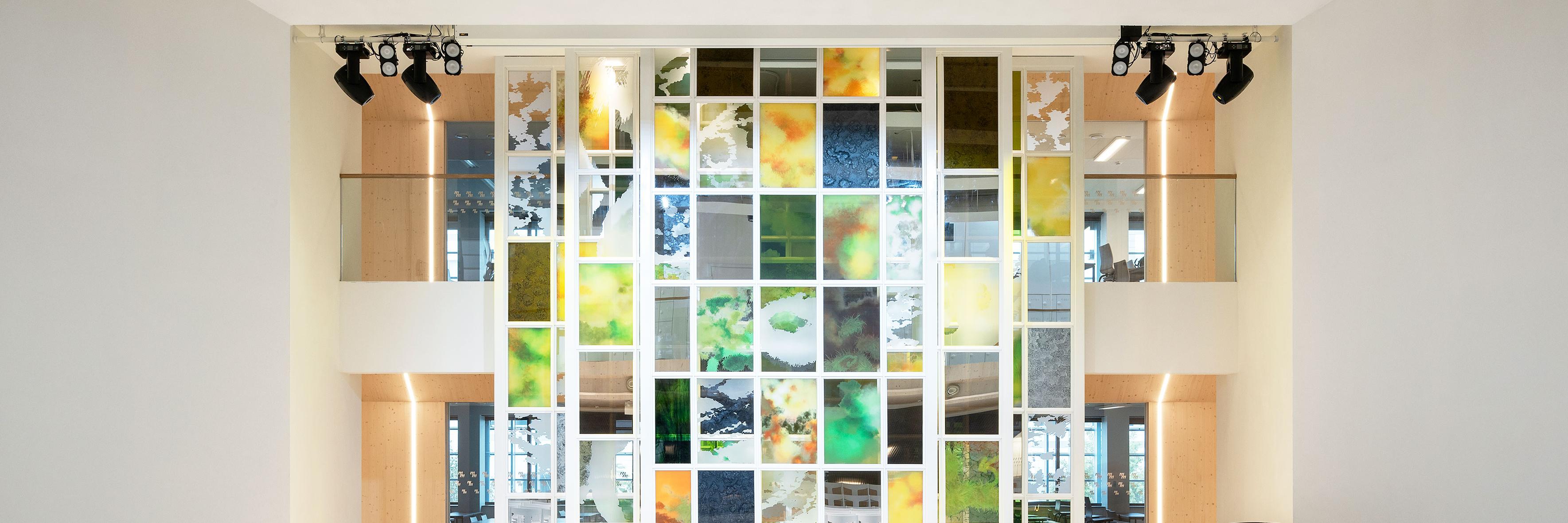 Riigi Kinnisvara koostöös Haridus- ja Teadusministeeriumiga viis läbi kunstikonkursi, et leida sobivaim kunstiteose ideelahendus Tallinna Mustamäe riigigümnaasiumi aulasse. 21 kavandi hulgast valitud Maret Sarapu võidutöö klaasikunstitaies „Voog“ on valminud.