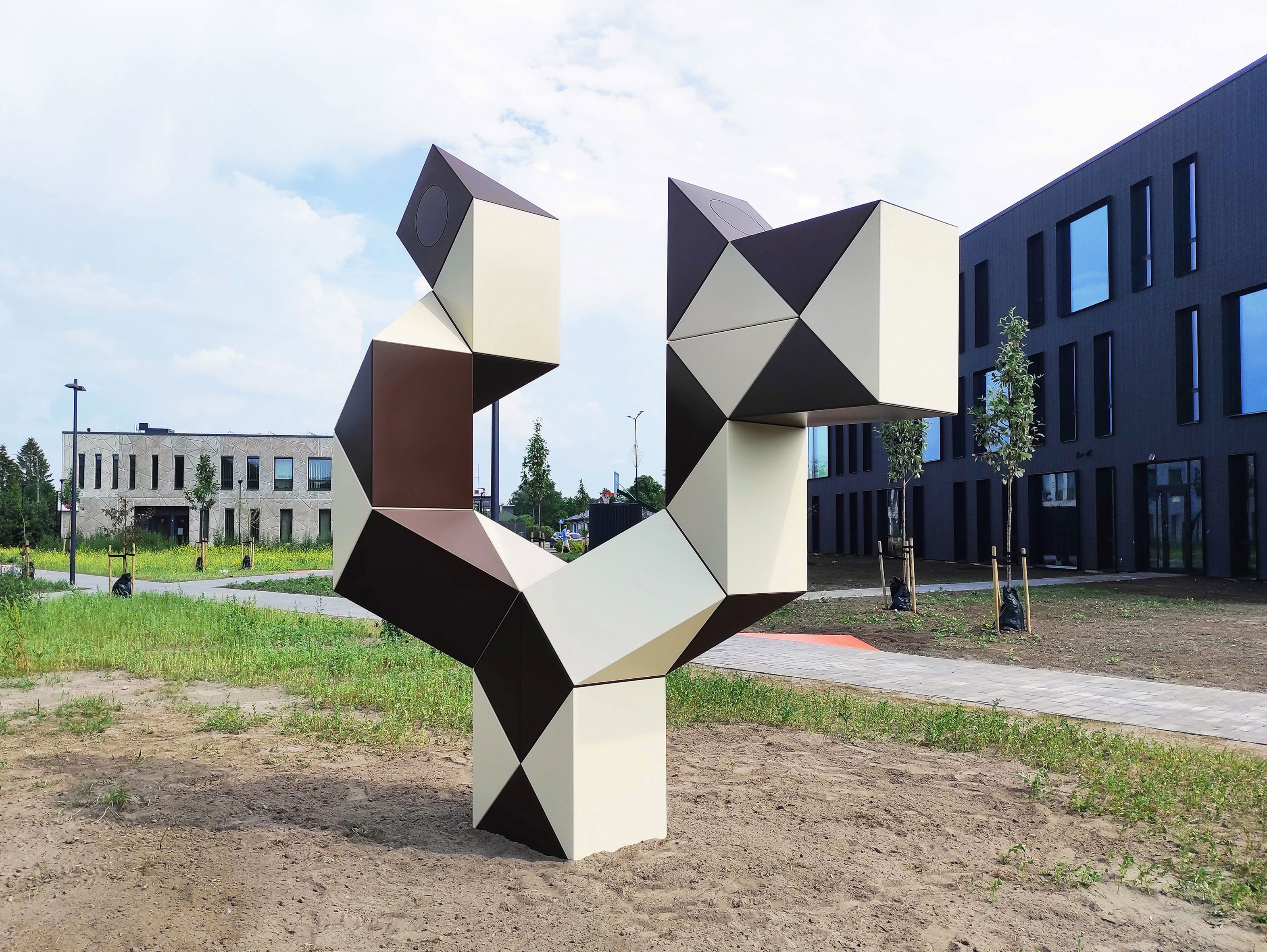 Laagris asuva Saue Riigigümnaasiumi haljasalal on valminud skulptuur „Kas sa koera oskad teha!?“